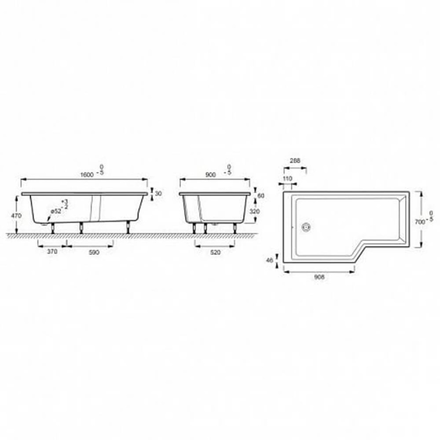 Акриловая ванна Jacob Delafon Bain Douche Neo 160х90 L белая без каркаса