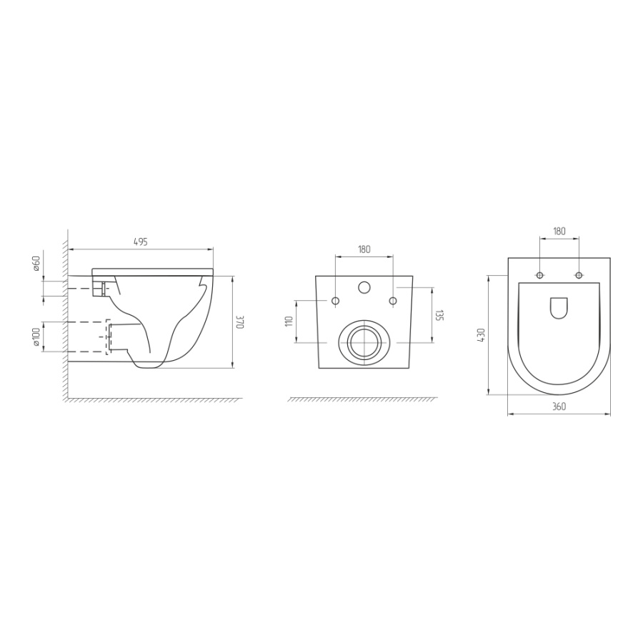 Унитаз подвесной AVS Спутник безободковый, белый