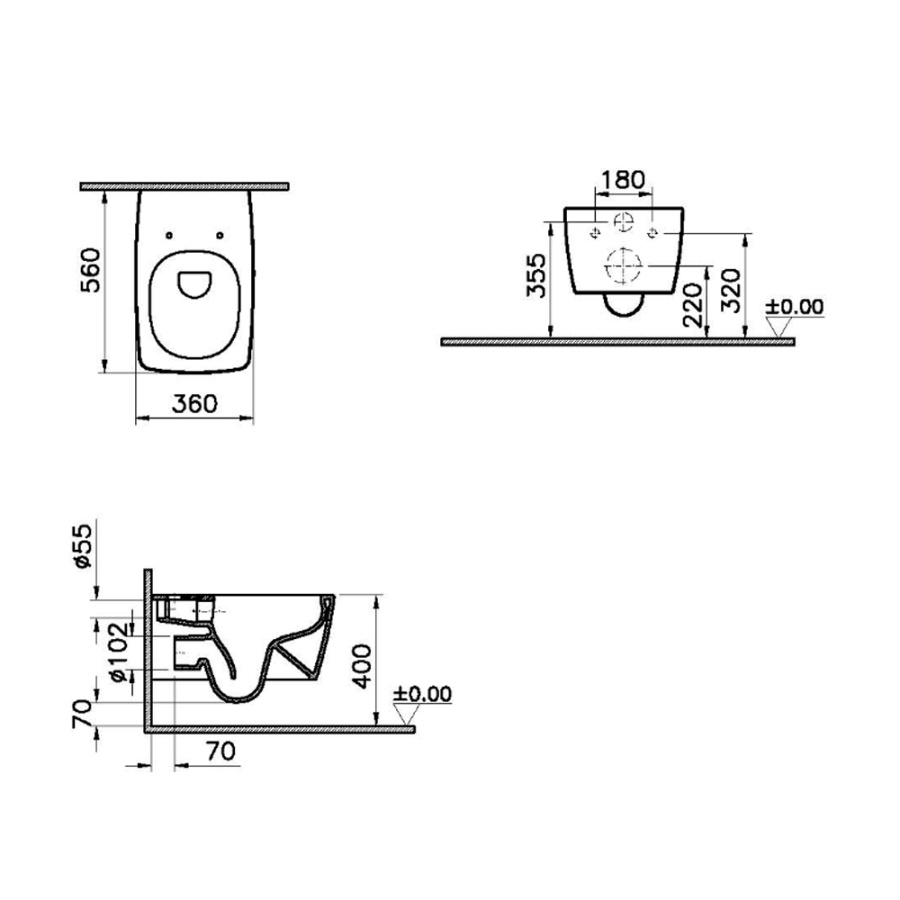 Унитаз подвесной Vitra Metropole 7672B083-0101+122-083-009 безободковый