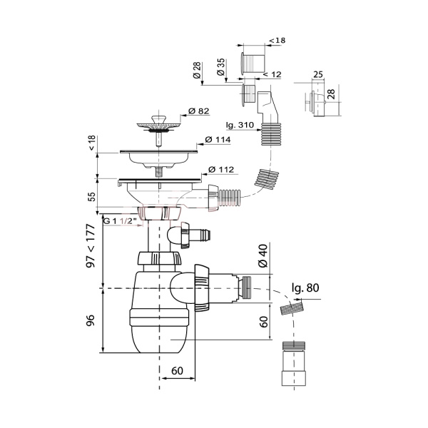 Сифон для мойки универсальный ALCAPLAST A8000