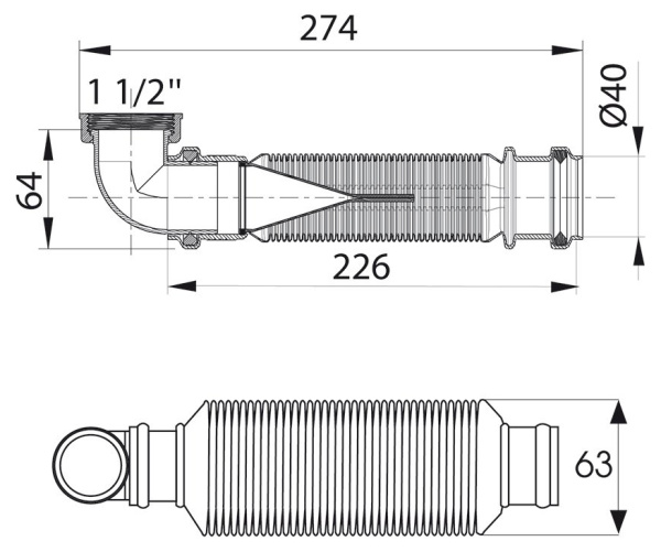 Водослив сифона для мойки с гофропереливом d115 Alcaplast A38